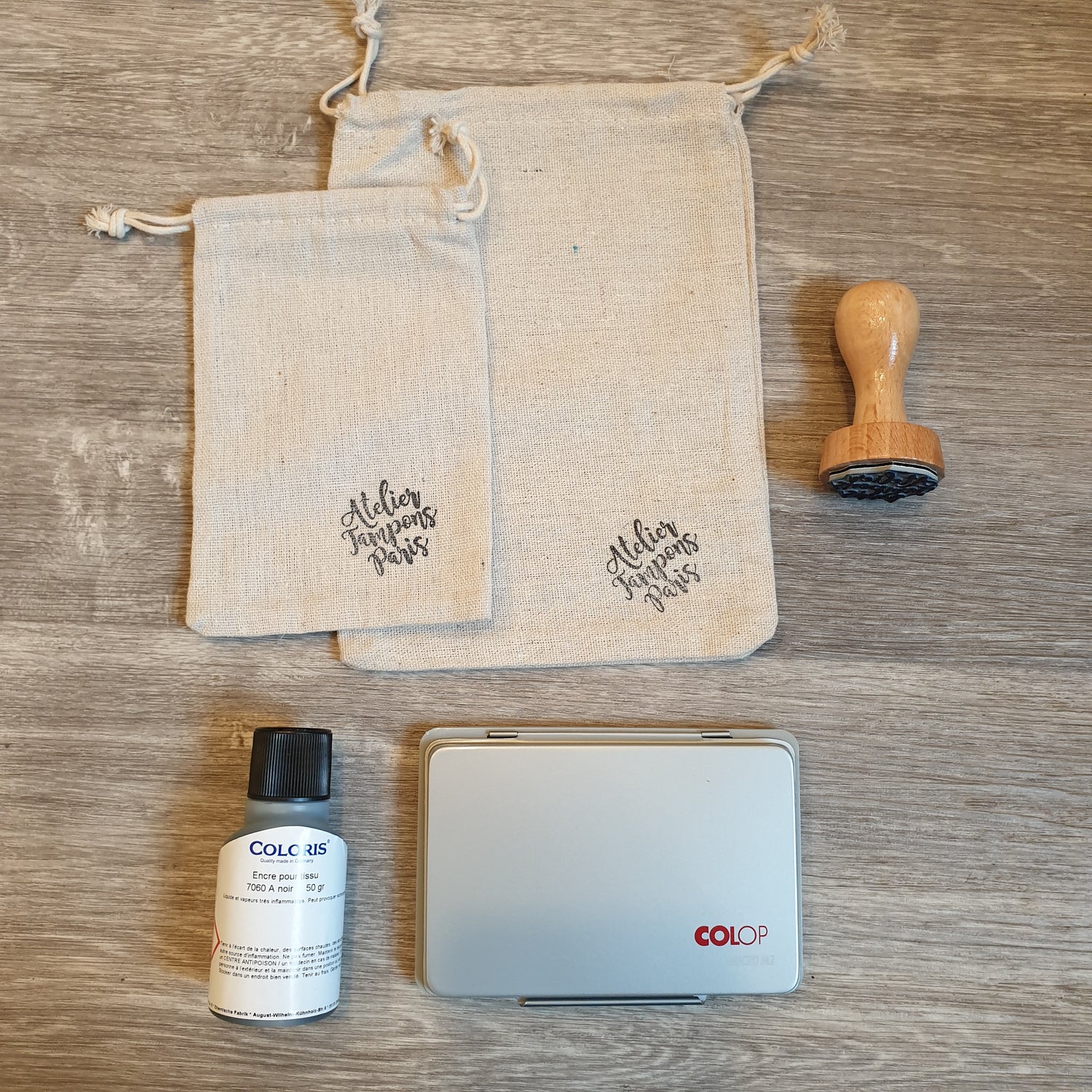 L'encre sèche en quelques secondes. Par précaution, nous vous recommandons d'estampiller vos tissus, puis de les étaler devant vous afin de leur permettre de sécher quelques minutes. Une fois que vous avez fait une dizaine de pochons par exemple, vous pouvez les empiler.