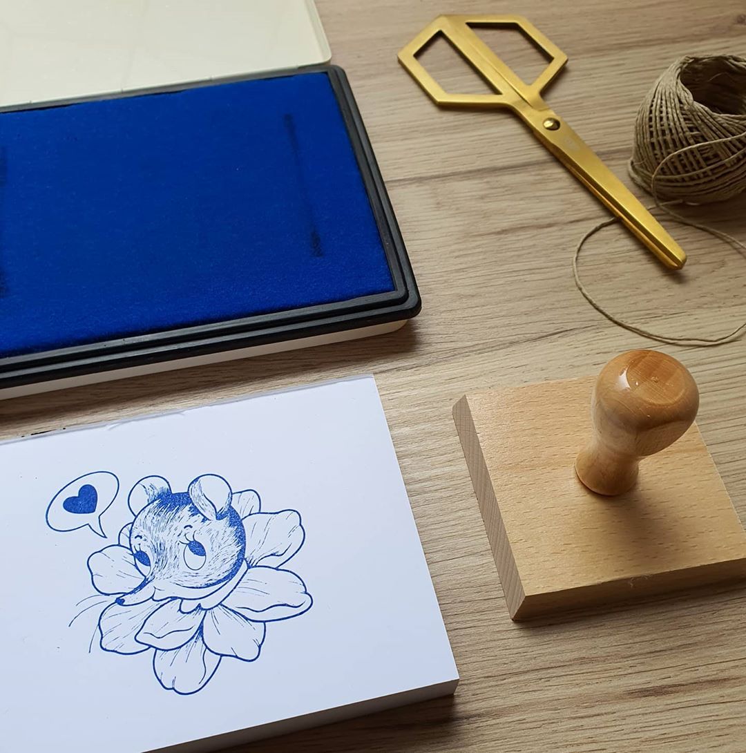 Le tampon vintage est une véritable reproduction des tampons de l'époque. La monture en bois est fabriquée par notre artisan dans le Jura, à partir de bois français. Les montures peuvent avoir des irrégularités et des nuances variables, symbole de leur fabrication artisanale.