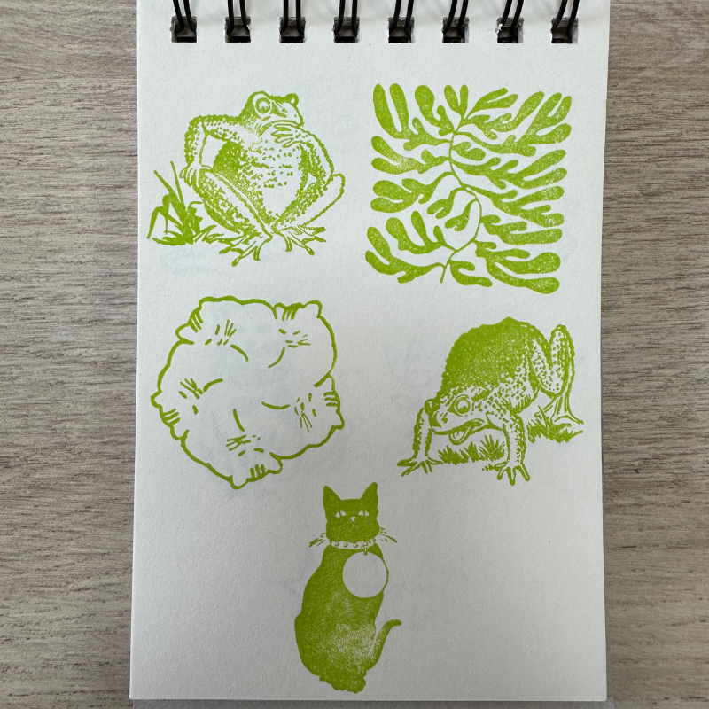 Un tampon illustré 5×5 cm Rituel d'Automne : chat, grenouille, fleur, à vous de choisir le motif qui vous plait.
